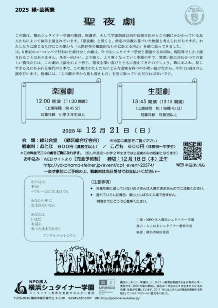 【受付終了】第6期横浜シュタイナー学園で学ぶ『教員養成講座』2025〜2027年